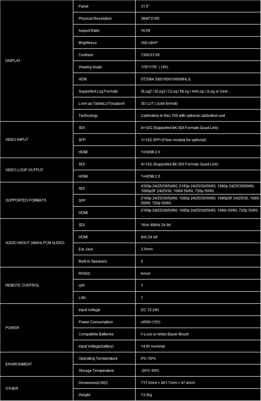 31.5 inch 8K 12G-SDI 3840×2160 studio production monitor