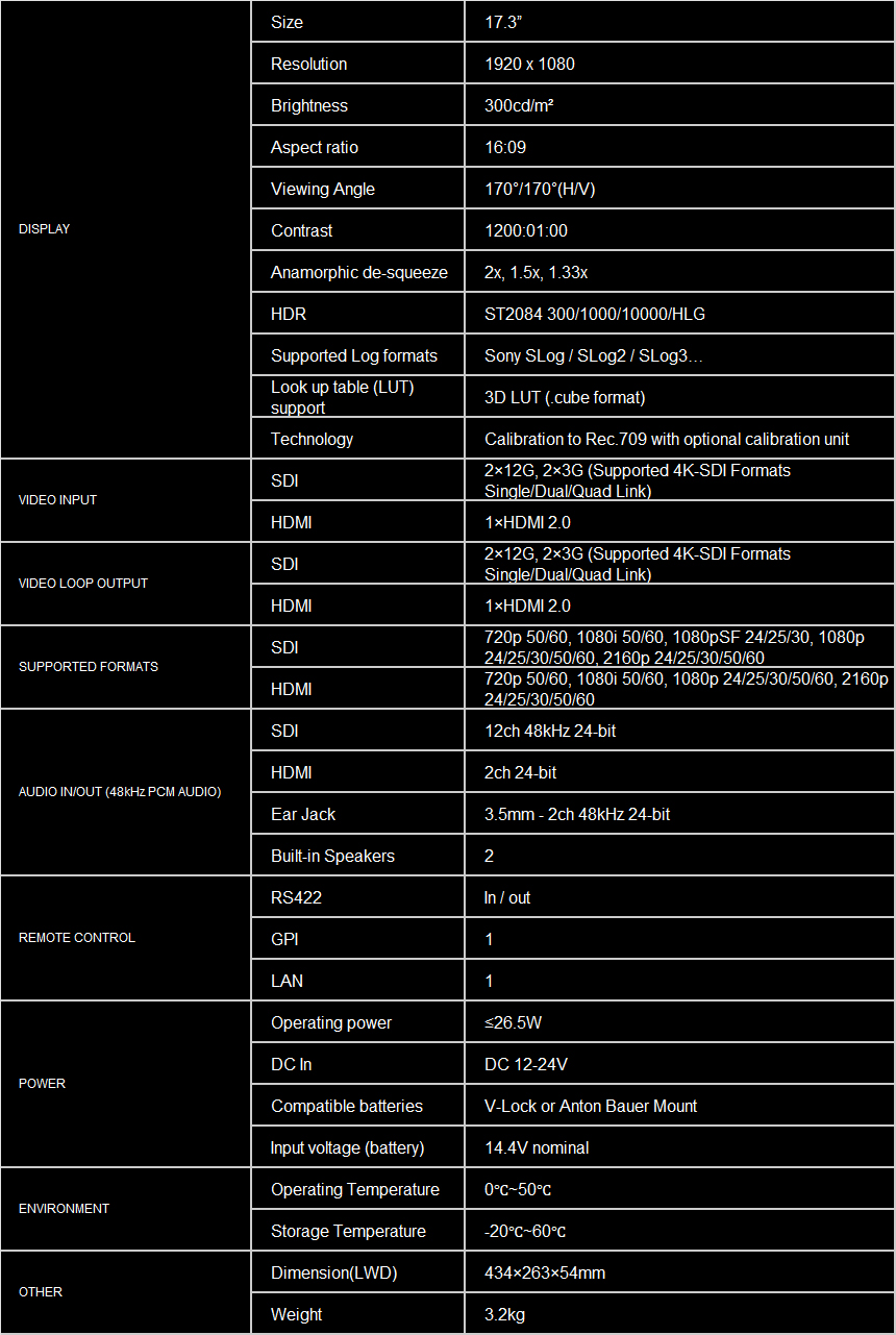 17.3 inch 12G-SDI production monitor