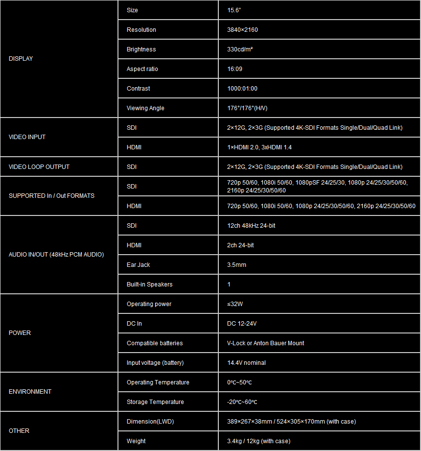 - Rich interfaces: 12G-SDI, 4K HDMI input,
