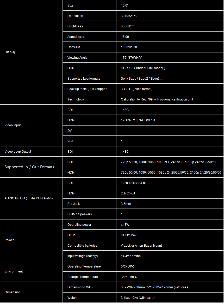 - Rich interfaces: 3G-SDI, HDMI, DVI, VGA, AV input,