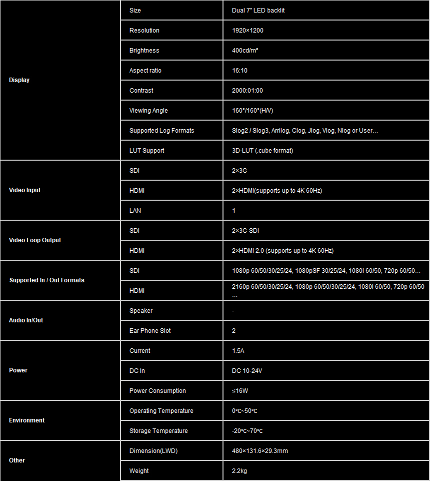 - Output:3G-SDI, HDMI 2.0