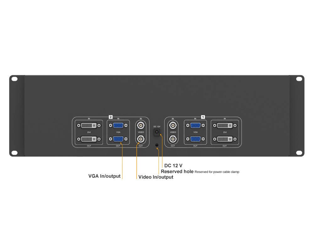 - Dual VGA, Video & DVI in/outputs,
