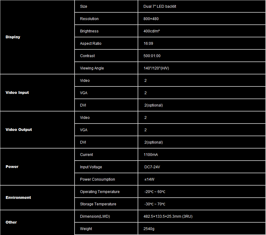 Dual 7 inch 3RU rackmount monitor