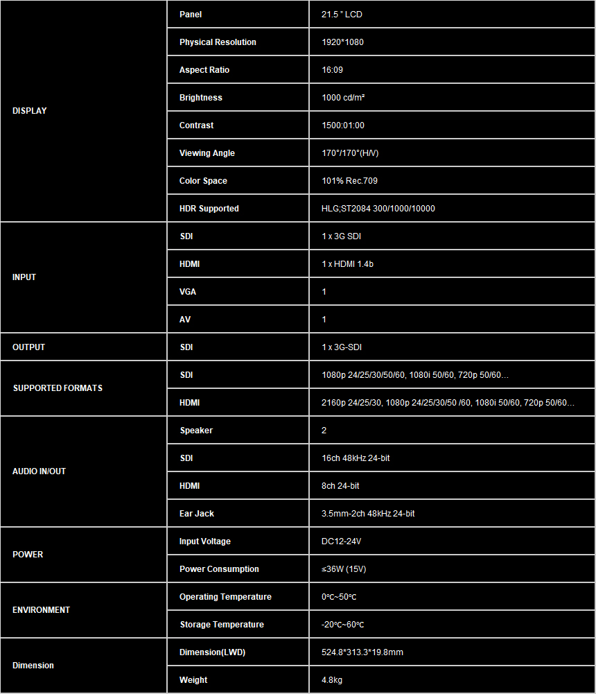 - Feature:: 1920x1080 resolution, 1000nits ,HDR...