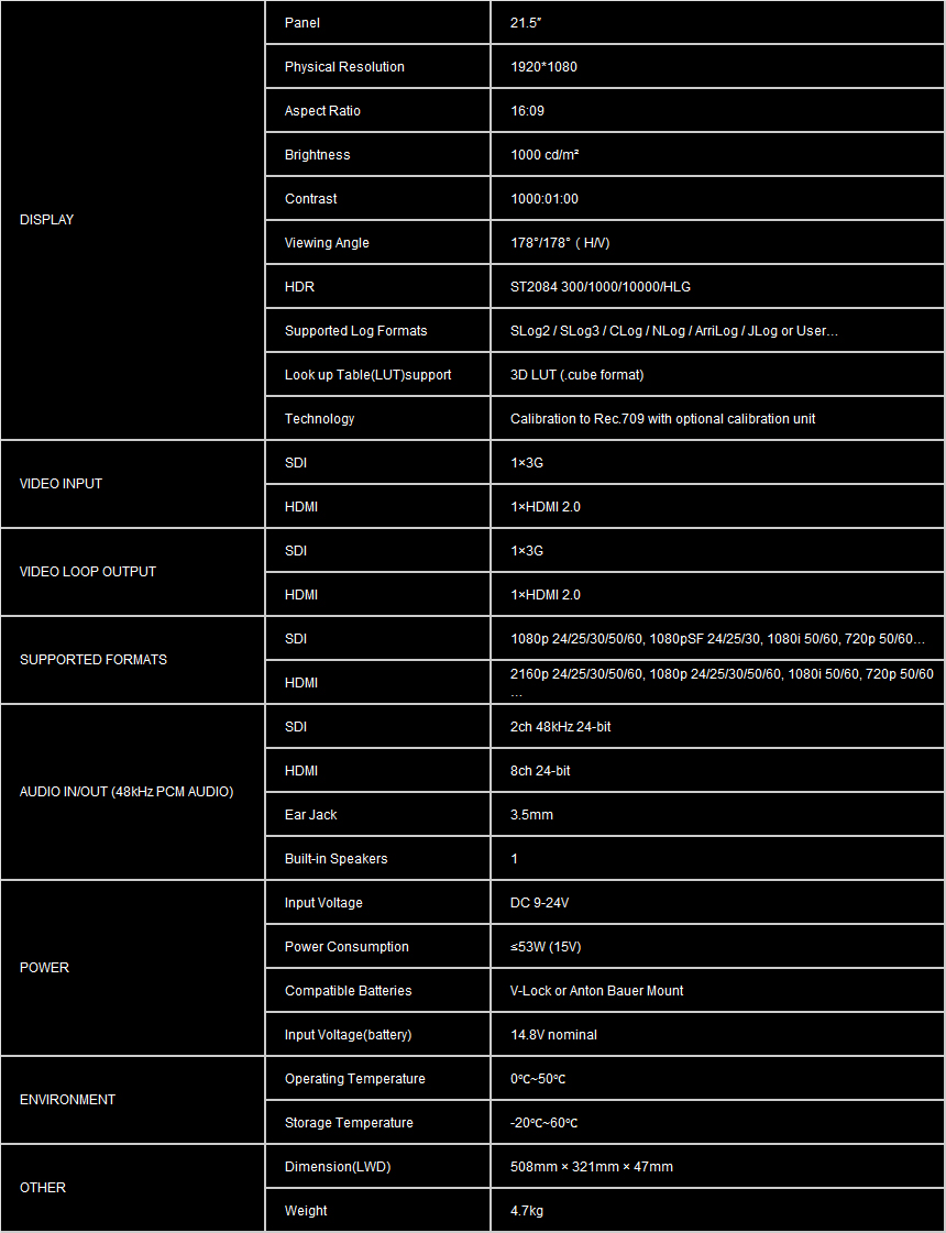 Input::3G-SDI, HDMI 2.0