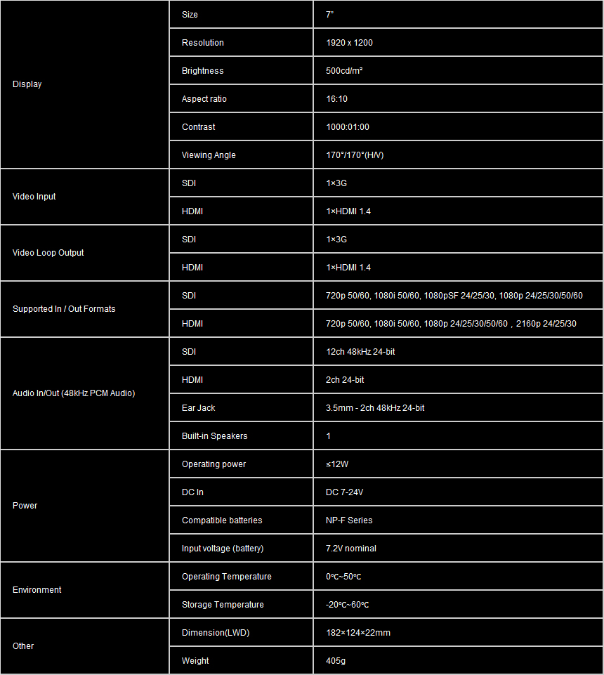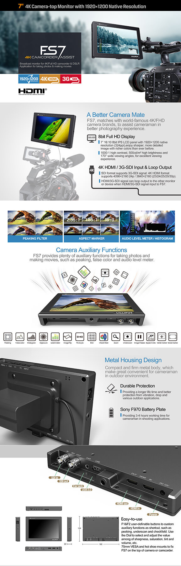 7 inch 4K Camera-top monitor