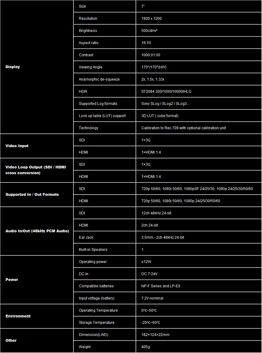 - Input:1×3G-SDI, 1×HDMI 1.4