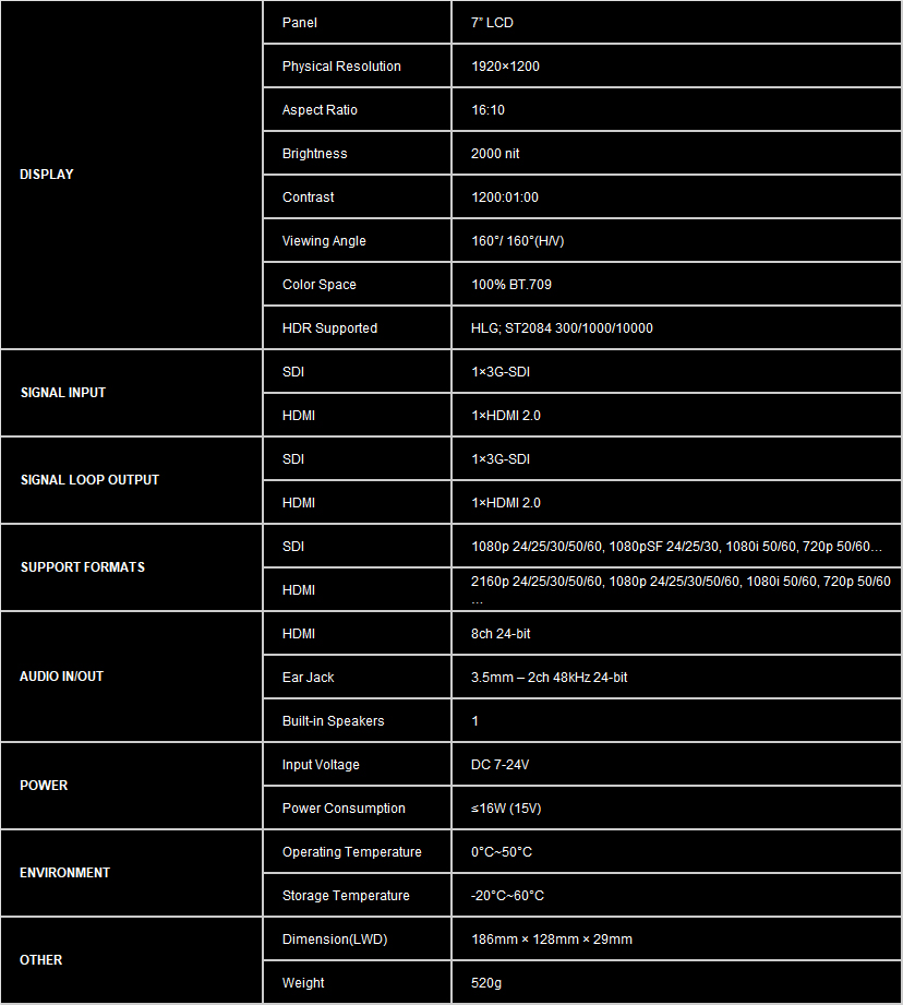 - 2000nits , HDR 3D-LUT, Touch Screen,Dual Batteries,Camera Contro