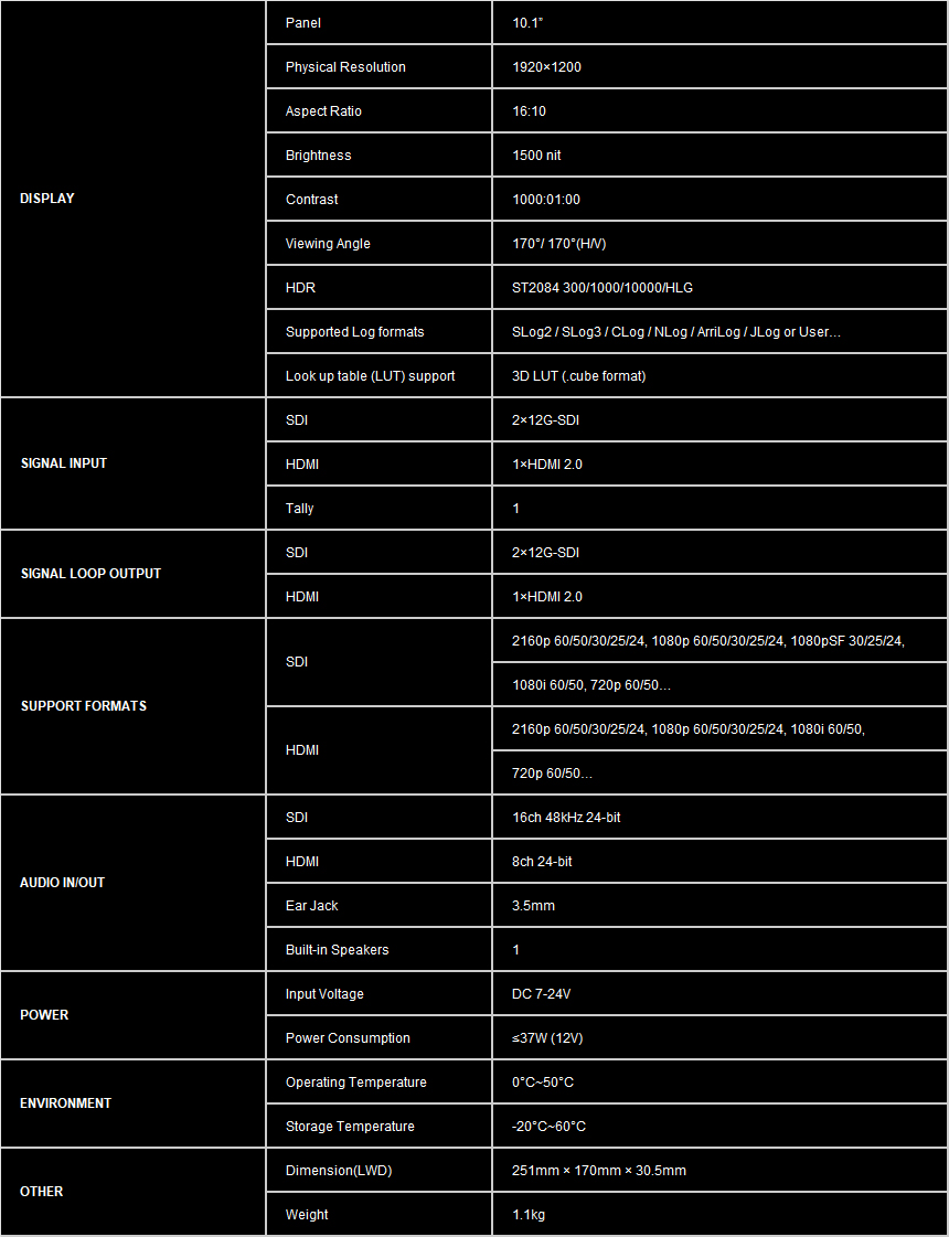 10.1 inch 12G-SDI broadcast studio monitor