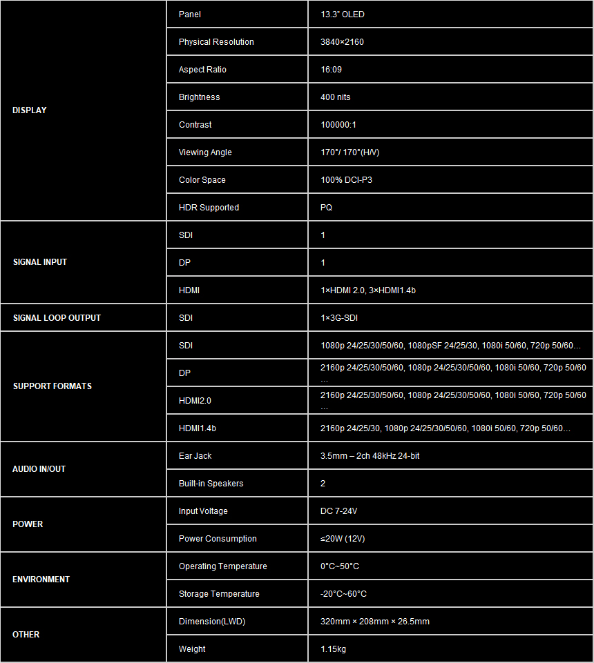 Feature:OLED 100000:1, 100% DCI-P3, 4K screen panel, Quad-split