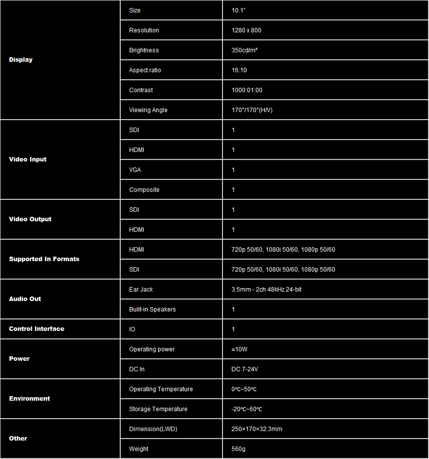 Abundant interfaces: 3G-SDI, HDMI, VGA & AV input