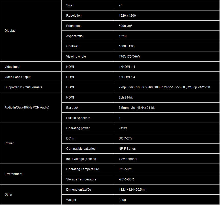 home > 제품소개 > > 카메라용 모니터 > [Lilliput] 4K HDMI 모니터