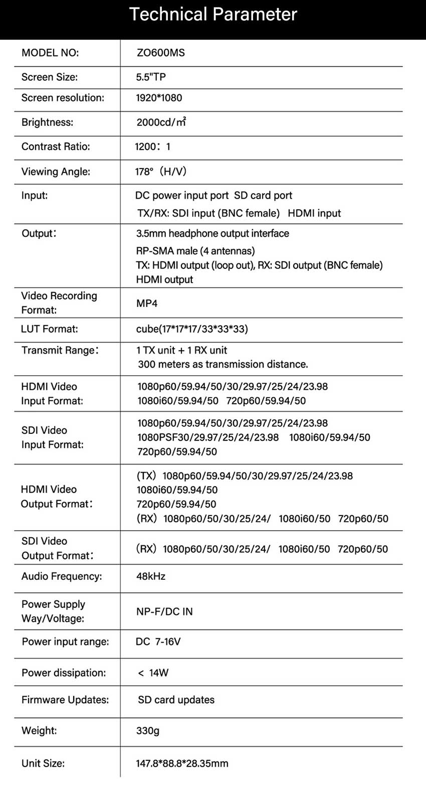 5.5 inch SDI/HDMI Wireless Touch Recording Monitor
