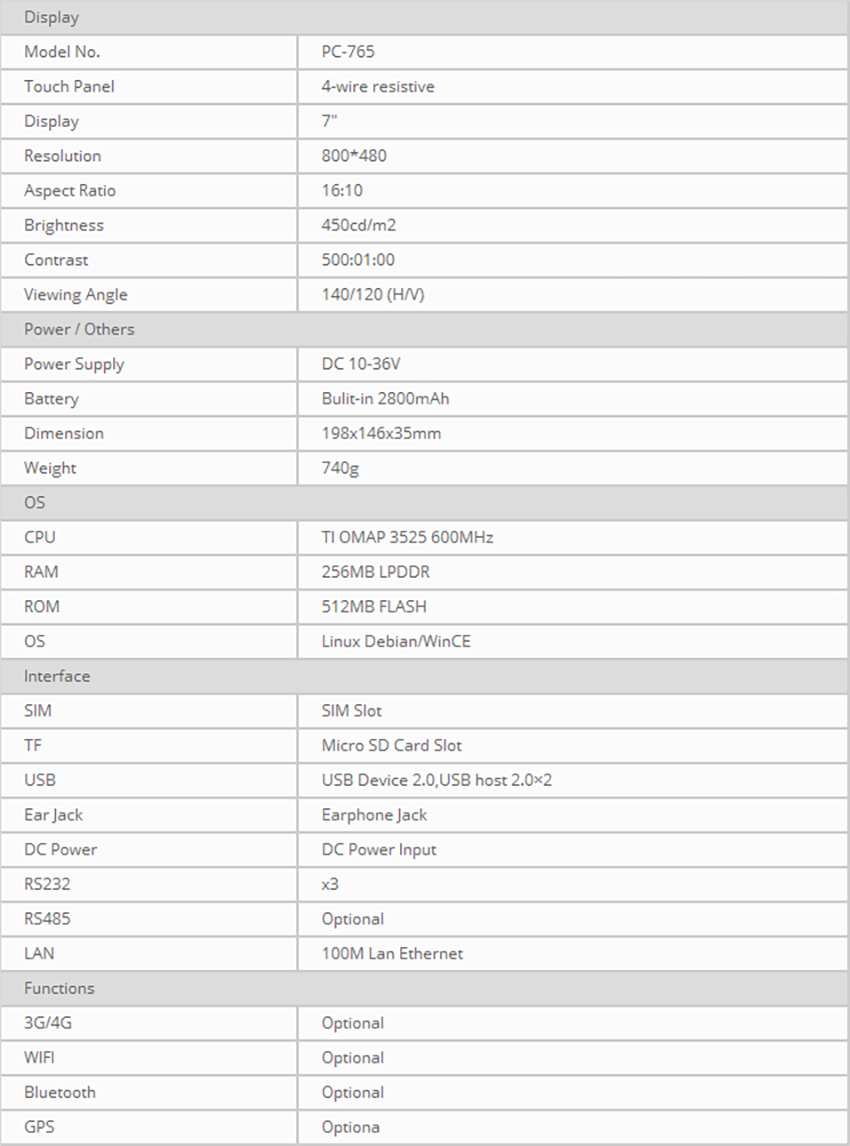 Interface: USB Host 2.0 × 2, USB Device 2.0 x 1 RS232 × 3 / RS232 × 2, RS485 × 1