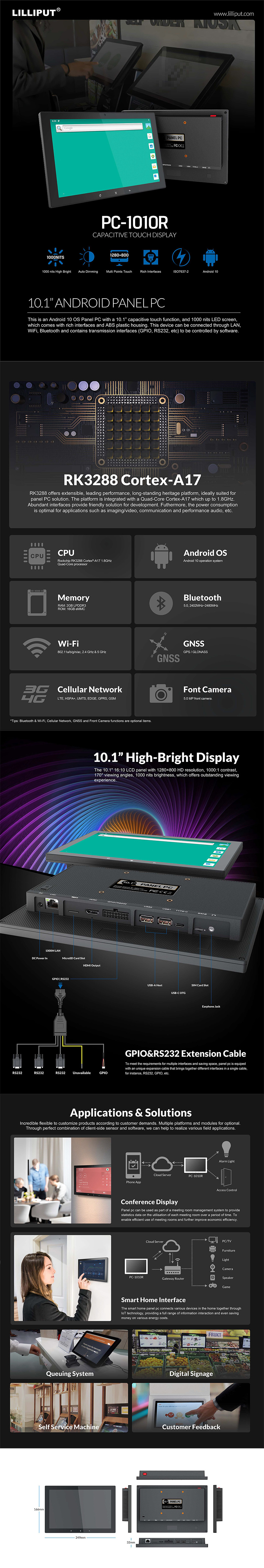 | LCD | 10.1” IPS, 1280×800, 1000 nit, 170°/170° viewing angle | ||
