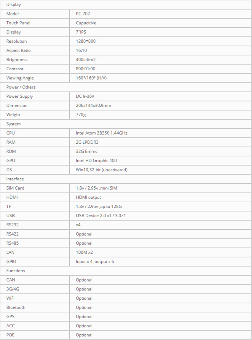 7 Inch Embedded Industrial PCHomeProducts X86 Series Windows PC