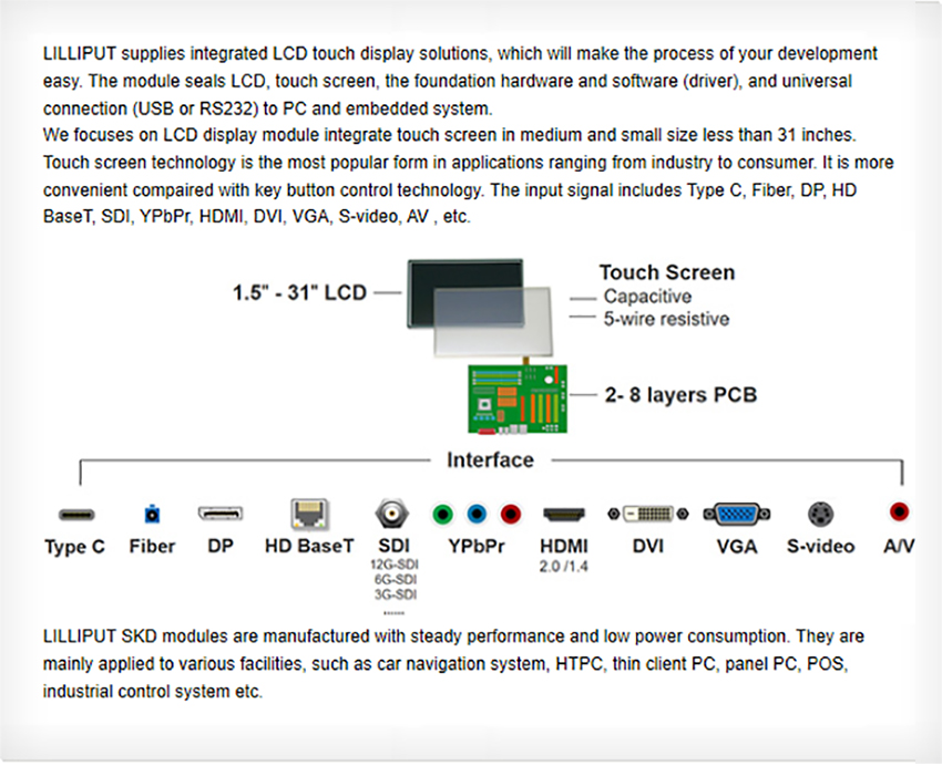 8" | 4:3 | 800×600 | 350 | 500:1 | 5 wire resistive | S | S | O | O | O | O | O |