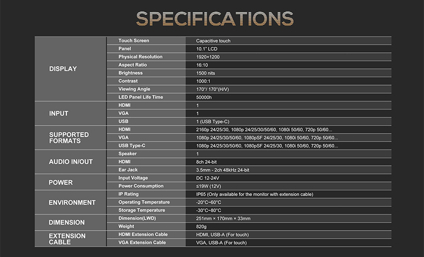 10.1 inch 1500nits High Brightness Industrial-Grade Touch Monitor